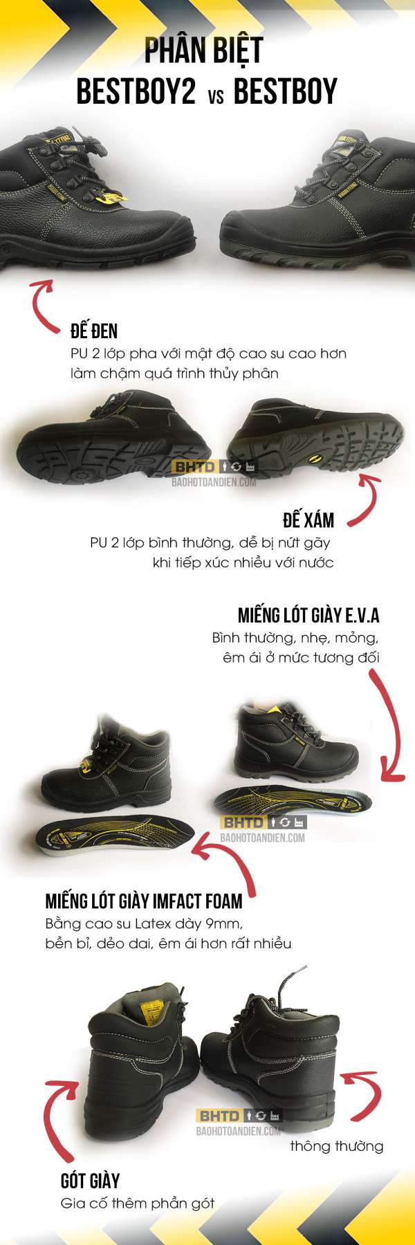 Với tiêu chuẩn này, BESTBOY2 chứng nhận khả năng bảo hộ toàn diện: Chống đinh, chống dập ngón, chống trượt SRC, chống tĩnh điện, chống dầu, chống thấm nước,...