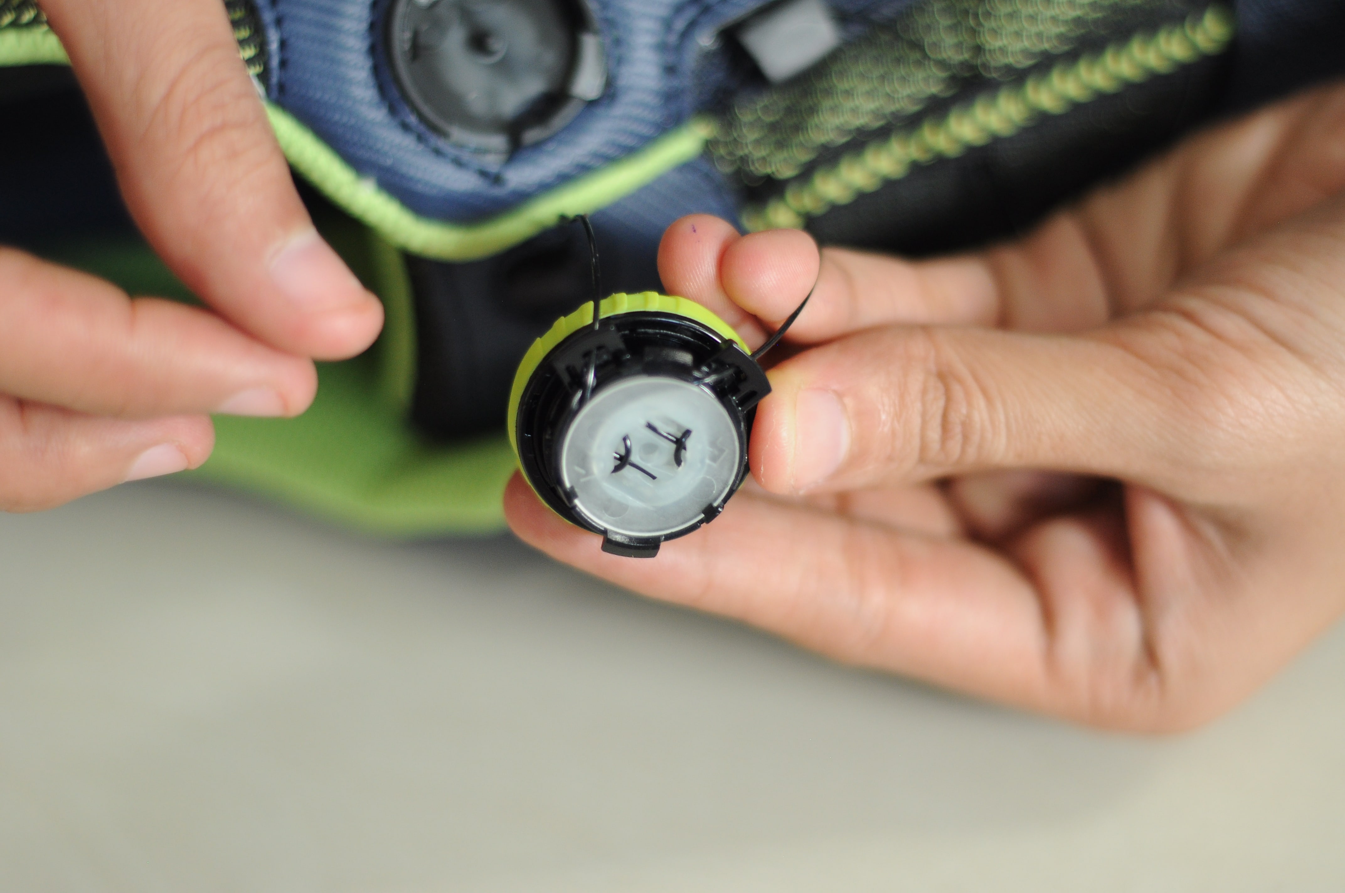 Dùng tuốc nơ vít hoặc dao tháo bộ chỉnh dây. Vị trí ngàm tại hình tam giác.